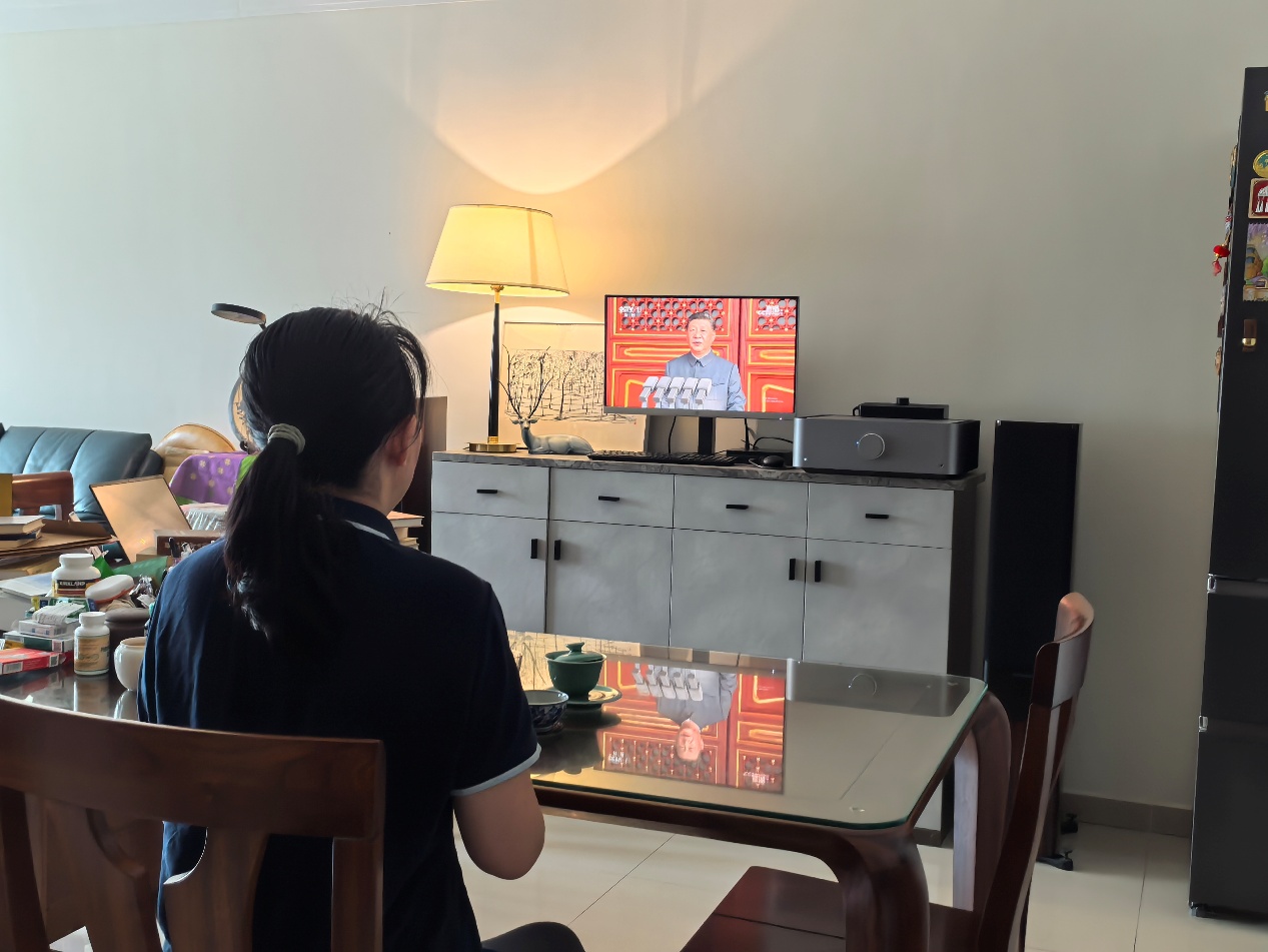 米兰milan(中国)组织师生员工收听收看大会实况。400名在校师生分别在外文楼206会议室和理教107教室集中观看大会直播。学院党委书记李淑静、院长陈明以及党政领导班子成员与师生齐聚一堂,见证这一具有重要历史意义的时刻。各党支部组织党员以多种方式收听收看直播。
