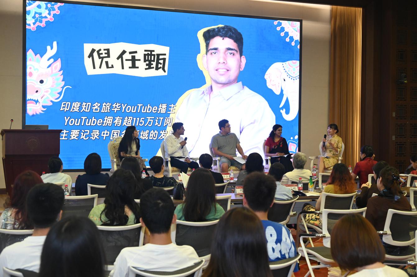 在英语对话专场,北大外国语学院南亚学系博士后黄乐乐结合自己在印度11年的学习与研究经历,呼吁青年学者在研究中深入挖掘文化互动的丰富内涵。印度知名旅华YouTube播主倪任甄(SHARMA RAM NIRANJAN)鼓励中印青年利用新媒体平台,以更生动、具体的方式促进两国人民之间的相互了解。国家发展和改革委员会国际合作中心助理研究员毛克疾从学术角度讨论了中印两国文化互鉴的重大意义。中国画报欧亚中心外籍记者麦德丽(MAITRI SHARMA)分享了选择生活在中国的原因,呼吁两国青年在学习与交流中重视各自文化的独特性与互鉴价值。
