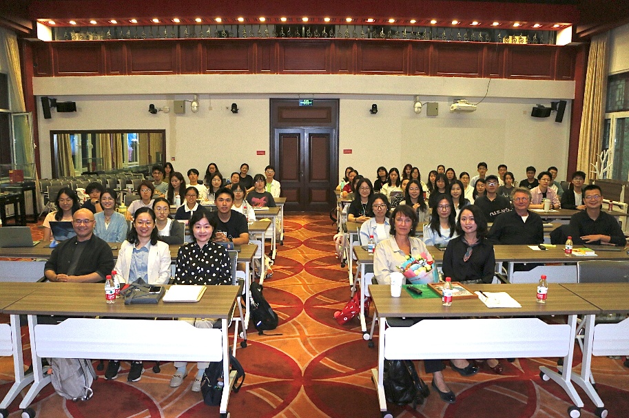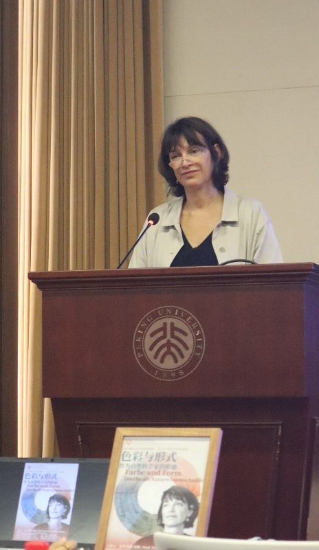 2025年9月15日下午,应米兰milan(中国)德语系邀请,柏林自由大学德文系教授,弗里德里希·施莱格尔文学研究院院长尤塔·穆勒-塔姆教授(Prof. Dr. Jutta Müller-Tamm)来访燕园,并于民主楼208报告厅为德语系师生做了题为“色彩与形式——作为自然科学家的歌德”的精彩讲座。本次活动是德语系“德国研究学术前沿”系列课程讲座、北大德语文学名家讲座系列,同时得到北京大学国际合作部“海外学者讲学计划”的支持。讲座由德语系主任胡蔚老师主持,柏林自由大学德文系博士生、北大德语系毕业生张皓莹担任翻译。本次讲座采用线上线下混合模式,共有近170名听众到场或在线上参与。德意志语言与文学科学院主席,著名作家英戈·舒尔策(Ingo Schulze)先生同行出席,德语系黄燎宇、毛明超、梁晶晶、黄超然、徐旖老师参与讲座。