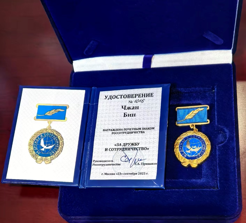 外国语学院俄罗斯文化研究所张冰研究员荣获俄罗斯政府“友谊与合作”荣誉奖章